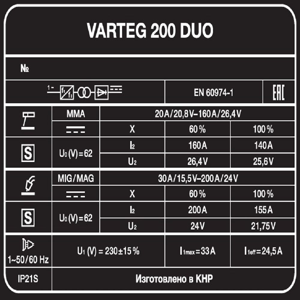 VARTEG 200 DUO — это современный инверторный полуавтомат, изготовлен по передовой IGBT – технологии.