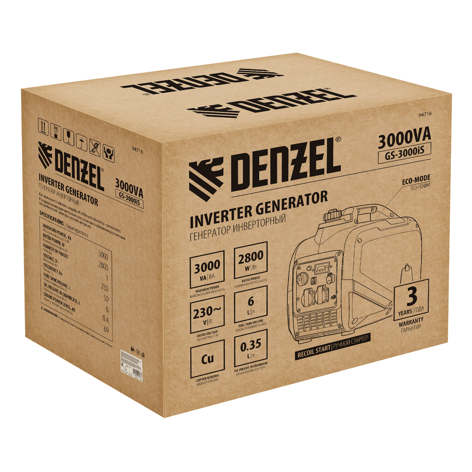 Бензиновый генератор DENZEL GS-3000iS 94716: характеристики
