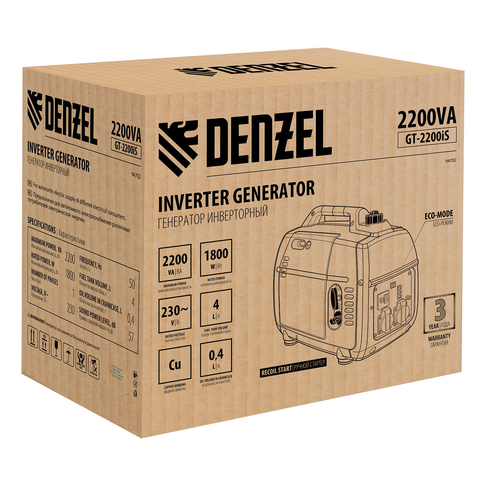 Бензиновый генератор DENZEL GT-2200iS 94702: характеристики